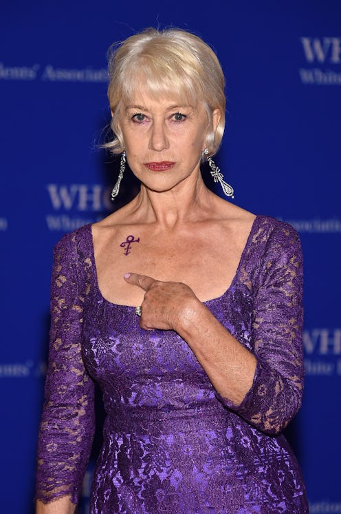 The 2016 White House Correspondents’ Dinner is well under way, and there’s already been quite a few statement-making moments. I mean, Emma Watson showed up wearing pants under a dress and one celeb showed up debuting a Prince tattoo. But, is Helen Mirren’s Prince tattoo real? Well, we can’t know for certain, but it could very well be!