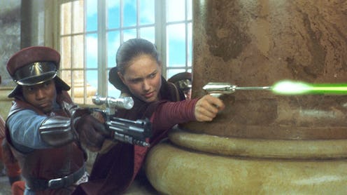 We saw some of Padmé's battle skills when she retook Naboo, but it's in Attack of the Clones that we see what she's really made of. She doesn't wait around for Obi-Wan or Anakin to save or protect her — she just jumps right in fighting for the Republic.