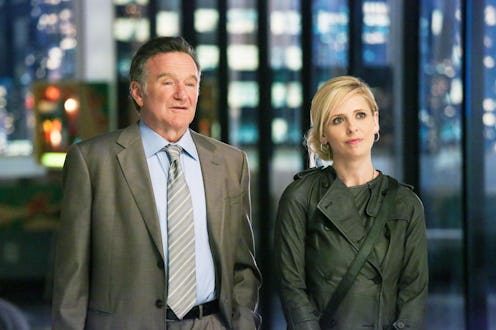 Robin Williams made his triumphant return to television Thursday on CBS's new comedy series, The Crazy Ones, which costars Sarah Michelle Gellar (yay, Buffy!) and a remarkably funny ensemble cast. For all of us Mad Men junkies, the mysterious Bob Benson, played by James Polk, stretches his comedy muscles alongside Williams' Simon Roberts as his sidekick, Zach Cropper. Also for us Mad Men junkies, The Crazy Ones takes the ad agency setting to a universe in which Robin Williams is almost as funny as Pete Campbell falling down the stairs last season.