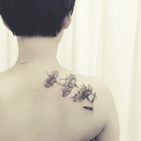 If you like minimalist tattoos, you'll totally dig Hongdam's work, and with over 34,000 followers on Instagram, you'd be far from the only one. Many of his tattoos are delicate, line drawings of flowers, splashed with bright watercolor-like ink, like this ranunculus.