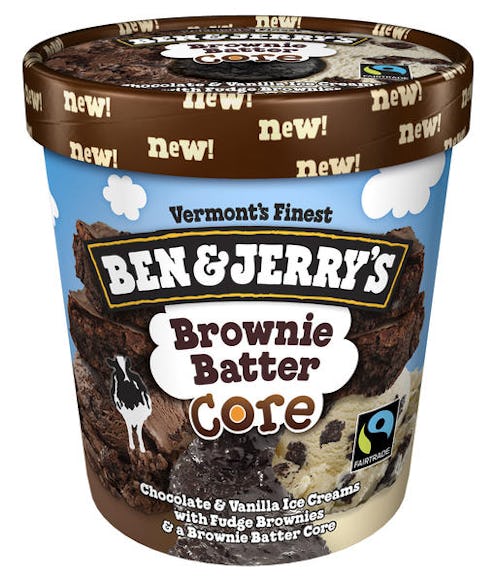 These days, you know that if something is announced on Snapchat, it's going to be a big deal — and few things in this world are a bigger deal than hearing there are three new Ben & Jerry's ice cream flavors up for grabs. I'll repeat for good measure, in case people in the back can't hear me — there are three new Ben & Jerry's ice cream flavors coming to a freezer near you. And not just any flavors! We're talking ~Cores~ flavors. You know, the pints that come infused with a gooey, creamy, delicious center, usually of the fudge, peanut butter, or cookie butter variety. Ben & Jerry's, a brand that is forever mindful of its millennial audience, has decided to reveal the new flavors one by one with separate announcements on Snapchat, starting with Brownie Batter Core, a combination of chocolate and vanilla ice cream, fudge brownies, and a brownie batter center. And if that sounds like a dream come true to you, just wait until you see what else the Vermont-based ice cream brand has in store.