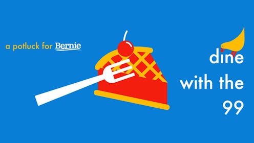 Natasha Losada, one of the event organizers, tells Bustle that Dine With the 99 was birthed only last month. Sarah Griffith of Annapolis, Maryland posted the idea on the public Facebook group Bernie Sanders Activists. From there, Losada created a Facebook event to get the potlucks rolling. Katharine Kennedy Coburn of Hopatcong, New Jersey messaged Griffith to offer assistance. Then, Molly Grover of Ithaca, New York lent her hand as outreach coordinator for Women for Bernie 2016, a grassroots group that provided all of the graphics for the Dine With the 99 website.