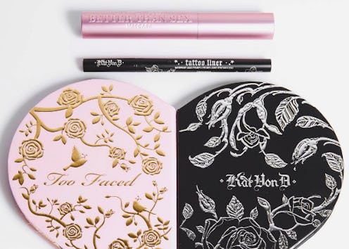 After months of teasing by both makeup companies, the Too Faced x Kat Von D Beauty collab is finally here. Let's just say that this is a match made in makeup heaven, if there ever was one. The two have come up with a gorgeous heart palette with two of their cult favorite products to go with it. The pretty little heart shaped makeup creation is a little confusing though. Some people are wondering if it's one palette or two, so here's how it breaks down.