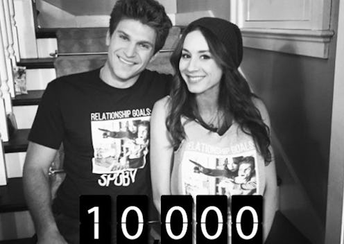 Attention all Pretty Little Liars and Spoby fans! Troian Bellisario and Keegan Allen's 'Team Spoby' tees are available for purchase once again — this time for 10 days only! According to an adorable Instagram photo of Bellisario cozying up to Allen on what looks to be the set of Hannah Marin's staircase, a whopping 10,000 Spoby merch has already been sold, so you don't want to waste time. Don't lie; you know you want one, and I am almost positive so will your best friend, parental units, and your significant other who claims they are "forced" to watch the show ever Tuesday, but secretly searches PLL theories on Reddit while bored at work.