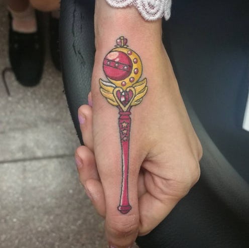 You don't have to get a huge back tattoo in order to show you're a true fan of Sailor Moon — although that would be fabulous. You can go for a more modest, dainty design such as this super pretty Sailor Moon wand tatt.