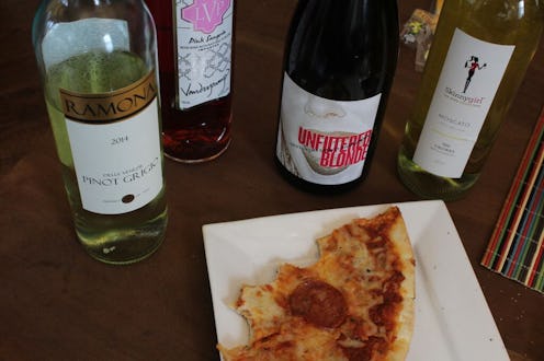 I, along with Bustle Entertainment Editor Kelsea Stahler and Associate TV Editor Martha Sorren, sat down with four Real Housewines (Brandi's Unfiltered Blonde, Ramona Singer's Ramona Pinot Grigio, Bethenny Frankel's Skinnygirl Moscato, and Lisa Vanderpump's Sangria) and five snacks (Cool Ranch Doritos, sour gummy candies, Froot Loops, pepperoni pizza, and string cheese) and got to tastin'. Let's just say, sour gummies and wine are not so pleasing to the palate.