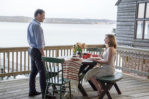 The last time we saw Noah Solloway, his temporary domestic bliss with Alison was seriously disrupted when detectives showed up to arrest him for the murder of Scotty Lockhart. And, as I tuned in for The Affair Season 2 premiere, I couldn't help but hope that we'd get some major clues or resolution about the mystery surrounding Scotty's death. As it turned out, we didn't — but the episode definitely didn't disappoint. It picked up well before Noah's arrest and, although the timeline remains unclear, the arrest still appears to be about a year away because Alison isn't shown to be pregnant yet, and the book that made Noah wealthy is still incomplete.