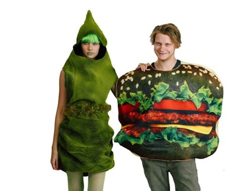 One of the reasons why I don't want to be single this Halloween is this black Burger King bun and green poop couple costume from a recent DIY blog post from HalloweenCostumes.com. It is the right amount of "too much information" and topicality that I am all about these days. Just imagine walking into a party with your significant other. Everyone will be looking at you like you are a costume god ready to guide them to Olympus, aka the Halloween Costume Hall of Fame. I think that this idea is clever enough to try out, especially if you are like me and have NO IDEA what you are going to be for Halloween this year. Make it easier for yourself and enlist a significant other or a friend to make this idea a reality.