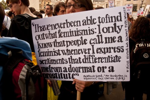 In case there's still any doubt left, Pulptastic created a quiz to tell you if you're a feminist, and it only has one question: "Do you believe women and men should have the same political, economic, cultural, personal, and social rights?" Indeed, no matter what dictionary you ask, feminism boils down to gender equality: Dictionary.com says it's "the doctrine advocating social, political, and all other rights of women equal to those of men." And Merriam-Webster calls feminism "the belief that men and women should have equal rights and opportunities." Yet there seems to be a misunderstanding about this — because 82 percent of people believe "men and women should be social, political, and economic equals," yet only 20 percent call themselves feminists. If you don't believe the dictionary, then, believe Emma Watson: