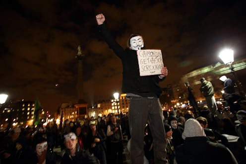 London's protests also had a specific dress code: the obligatory Guy Fawkes mask, along with judicial garb that included a black robe and flowing white wig. Smaller protests, like Denver's, were less themed and more a show of solidarity.