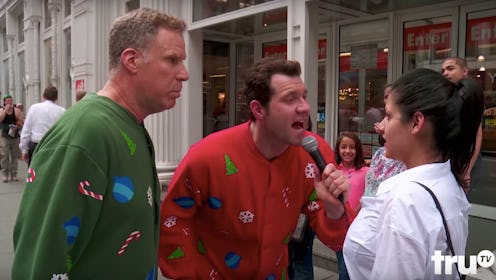 This realization stems from, of course, the latest teaser for the Billy on the Street Christmas episode, — aka "Christmas On the Street with Will Ferrell!” — which features Eichner and Ferrell presenting strangers with gifts. Namely the gifts of themselves, but sometimes a stack of hay, or a Christmas ornament with Leonardo DiCaprio's face on it. You never know! That's part of the fun.