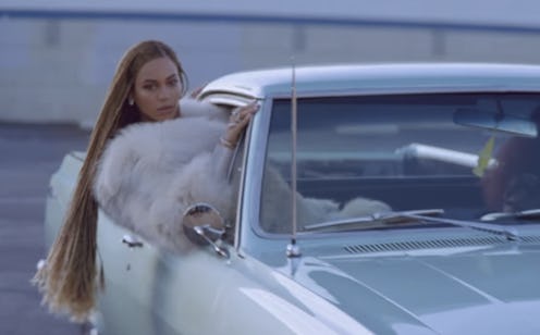While Beyoncé has always loaded her music with a sense of female empowerment, it tends to be in a more general sense. Here, Beyoncé is the one who is empowered, she's the one who is owning her cultural identity, and she is the one who doesn't care if you don't like it. "Ya'll haters corny with that Illuminati mess/ Paparazzi catch my fly, and my cocky fresh," she sings during the refrain. It is a proverbial middle finger (to go along with the literal ones she throws up in the video) to the people who dismiss her success, and the paparazzi's insatiable need to follow Beyoncé and her family at all times. She even proudly admits to being possessive of her husband, Jay Z: "I'm so possessive, so I rock his Roc necklaces."