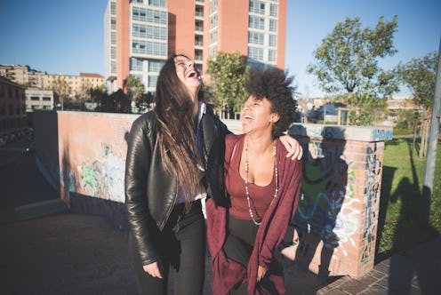 This survey is proof that when you foster your chosen community and prioritize your own mental health, your happiness will seep into all aspects of your life. Partnerships are beautiful things, but so are friendships with the strong women in your life. So how wonderful it is to know that they benefit from each other. See more from Koretz and Martinez about why female friendships are so important below (joined by GIFs of my fave girl power BFFs, Abbi and Ilana of Broad City and Leslie and Anne of Parks and Recreation). But first, check out the latest episode of Bustle's Sex and Relationships podcast, "I Want It That Way":