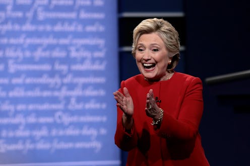 Throughout her long political career, it's safe to say that Hillary Clinton has faced pretty much every single sexist comment in the book. From assessments of her clothing to her demeanor to her health, people cannot stop talking about her and demanding that she act, dress, or be a certain way. Often, she's told she comes off as cold, and that she needs to project a warmer image. Well, during the first presidential debate on Monday, Clinton beamed as she took down Donald Trump, which led an editor on Twitter to comment on the fact that she was so cheerful the whole night.