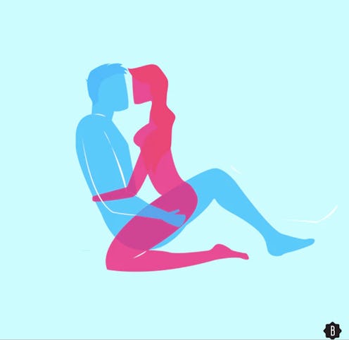 How to do it: Have your partner sit with their legs crossed. Next, you want to straddle them, lowering yourself onto their lap. From here, wrap your legs and arms around them, as if you’re giving them one hell of a bear hug. This position requires some rocking, as well as gyrating.