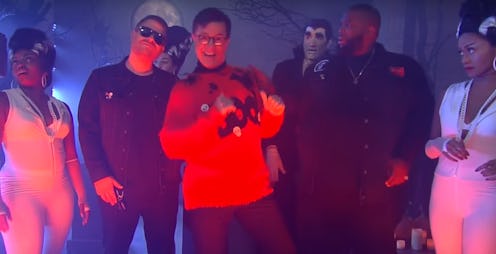 Something that becomes more apparent as you get older is that Halloween can mean greatly different things to different people. For some, it's the season of spookiness, toffee apples, and trick-or-treating. And for others, it's simply the greatest party time of the year. So it's kind of understandable that nobody has managed to create any modern Halloween songs which can appeal to the sweet quaintness of the former and the hedonistic needs of the latter — well, nobody except Stephen Colbert, that is. On Thursday night's episode of The Late Show With Stephen Colbert, hip-hop impresarios Run The Jewels made a Halloween song with Colbert called "Halloween Wiggle," and my oh my, was it truly a wondrous fright.