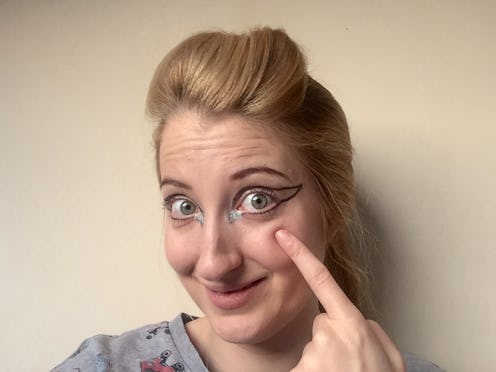 However, as a performer and someone who grew up with a dance teacher mom — which meant I was basically on stage as soon as I could walk — I could tell this eyeliner design was eye-catching from afar, but I wasn't so sure how it would look in the streets or in stores, standing next to other humans, or passing them close-by on the street. Graphic eyeliner is one of those looks that you wouldn't blink an eye at if you saw someone wearing it while in a play, but I imagine it would be a whole other story if you were having a conversation with them out of the context of the theatre. I was eager to see what the folks of my small town in Northern England would think.