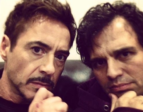 Filming for the Avengers sequel is fully underway now, and that means a lot of things: Looks at the costumes for Scarlet Witch and Quicksilver, speculation on how Guardians of the Galaxy and Age Of Ultron will affect Avengers 3, the list goes on. Mostly what it means, though, is that Robert Downey Jr. and Mark Ruffalo are being real damn cute on the set. And they're documenting it for all of us — for which we should be eternally grateful.