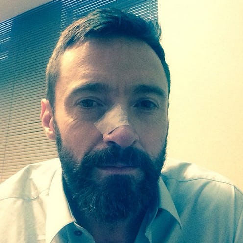 If you don't listen to your doctor, maybe you'll listen to Wolverine. He is much scarier, after all. Hugh Jackman was treated for skin cancer for a second time on Thursday and posted a photo urging fans to take prevention seriously. In the Instagram photo, Jackman has a bandage on his nose and the caption "Another Basel Cell Carsinoma. All out now. Thanks Dr. Albom and Dr. Arian. PLEASE! PLEASE! WEAR SUNSCREEN!" accompanies the pic.