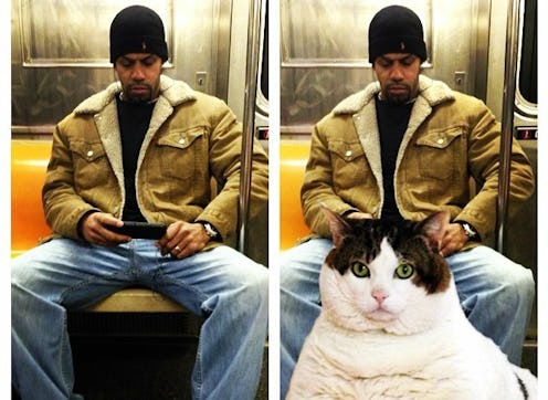 The New York City subway (and, really, any subway in the world) can be a cramped and uncomfortable place. Sure, it gets you where you’re going, and it’s a lot more affordable than taking cabs everywhere — but having your face shoved up against someone’s sweaty back during your evening commute on a hot summer day is probably most New Yorkers’ idea of hell. But you know what’s even worse than a cramped subway? A cramped subway that is so gosh darn cramped because someone has decided that they need all the space, and that it's reasonable for them to force anyone else who might need a spot to stand. Why do some folks feel the need to spread themselves out over three seats, anyway? Thanks to a glorious new Tumblr, we now have the definitive answer to that very question: They’re Saving Room for Cats, of course.
