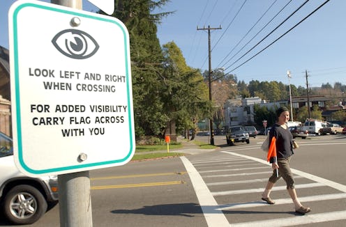 If the idea seems a bit low-tech, it's because it's been around for nearly 20 years. First put into play in 1995 in Kirkland, Washington, pedestrian flags have been a mainstay at some crosswalks for years, and other cities, like Salt Lake City, Utah, have adopted the program since its debut. But for some cities, having flags didn't really make a difference when it came to traffic accidents, as evidenced by an unfortunate incident in Berkeley, California, in which a 53-year-old woman, carrying a flag, was struck by a Jeep just 48 hours after the program's implementation. Luckily, the woman was not seriously injured, but her accident did suggest that flag-carrying wasn't exactly a particularly effective safety precaution.
