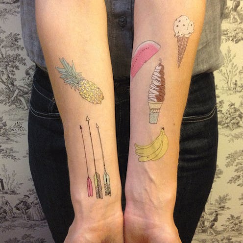 Meh, you’ll think about it at least. Certainly though, the temporary tattoos of the 21st century are a bit more complex than those tribal swirls of yore, vended from '90s gumball machines. Artists are upping their game in the ephemeral ink department, much to the joy of every indecisive person on Earth. There are plenty of crazy fun designs out there today that are just as cool as the real thing. They feature plenty of the things that you’d consider getting branded on your body in the first place-- food, cat portraits, Victorian illustrations, and even some life mantras. Check out our favorites that we’ve collected, and take comfort in the fact that you’ll never have to hide any of these from your parents.