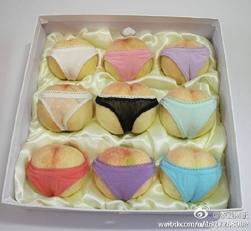 According to Kotaku, these fleshy little bottoms are being sold in honor of the Chinese Qixi Festival, which begins this year on Aug. 2. First developed by a fruit vendor in Nanjing, they come in decorative boxes of nine, with each peach resting on a luxurious bed of satin. The vendor calls them “Ripe Fruit” (we see what you did there!).