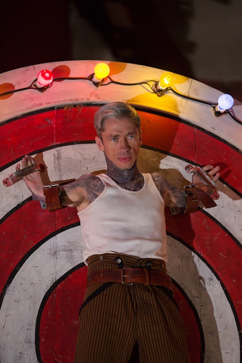 Proving that you really can't predict anything on this show, Wednesday night's American Horror Story: Freak Show episode "Bullseye" introduced a love triangle between Paul the Illustrated Seal, Elsa Mars, and Penny the Candy Striper. That's right, folks, Paul has got some serious game. Like to the point where he buys his boss lingerie for her birthday, so she can wear it for him later. Dude's a playa and it's pretty much the best thing ever. As of now, it's unknown exactly how long his little dalliance with Elsa has been going on (does this mean he knows about her legs?), but it became clear right away that his heart actually belongs to Penny. Evidently the two of them became quite close to one another during Penny's rather controversial visit to the sideshow. But that's American Horror Story for ya: finding love in the strangest of places.