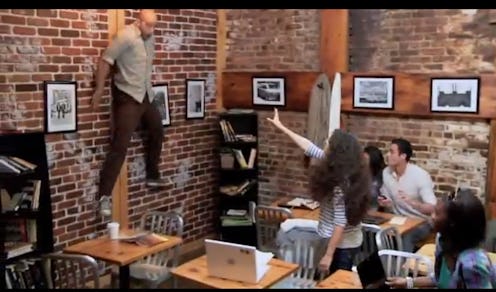 Some West Village coffee shop-goers in Manhattan were treated to a shock this week when a woman used her telekinetic powers to slam a man against the wall after he spilled coffee on her laptop. You know we've all gotten that urge before, and you also know that there was at least one person in that coffee shop who shouted "I KNEW IT" when apparently witnessing the fact that other-worldly powers are real. Unfortunately for that guy, the whole thing was a coffee shop guerilla marketing spoof for the upcoming Carrie remake.