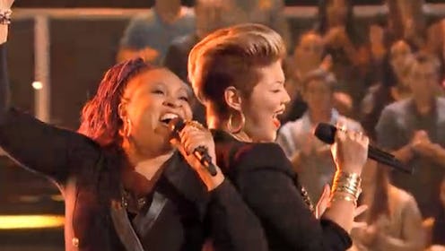 Donna Allen vs. Tessanne Chin, "Next To Me": I called this. I usually relish in being right, but holy crap-ola, am I pissed off. Doye, this performance was insane. Donna's voice turned into a blender and rendered the entire crowd into smoothies. So. Much. Power. Tessanne was so centered and gorgeous. This battle was dumb and I hated it (because it was so good). Tessanne won, no one saved Donna, and I'm asleep on the floor. Donna was my number one. I don't know if I can forgive Adam for this.