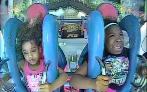 Remember when you were a little kid and you were so, so excited about amusement park rides? I'm pretty sure I would have sold my own sister's arm to reach the height limits on roller coasters a year faster. Of course, when we finally all got there we were scared brainless, with the kind of terror forever immortalized by these two girls freaking out on the Slingshot ride at Indy Speedway. I've never heard that much screaming in my life, and this is coming from someone who was once roped into chaperoning a bunch of tweens at a Jonas Brothers concert in 2008.