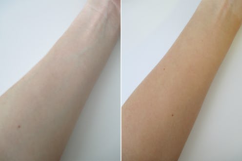 For each of three days after my morning shower, I added four drops (Clarins recommends four to six ) to my lotion for each section of my body (legs, torso, arms, back). I then snapped a picture of the inside of my arm 24 hours after the application to see how the palest part of my body tanned. After three days of consecutive tanning, I then did not apply any tanner for one week to see how much it would fade. Here's how it went: