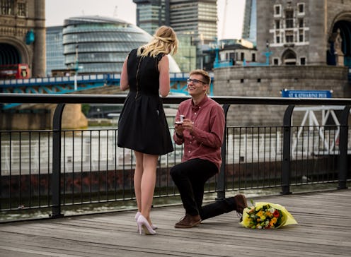 It's that time of year again: wedding season, my favorite! For the past two Sundays (yes, I have been keeping track), my Facebook feed has been inundated with people I used to be friendly with saying "yes," and while that's sweet and all, pretty much nothing can top this proposal: Chris Livingston surprised his girlfriend in London, where he proposed to her. I think that as far as surprise, public proposals go (like that bizarre iPhone proposal, or, I don't know, proposing to your SO with a giant flash mob), this is one of the better ideas I've seen. It's sweet, it's personal, it's in public but it's not so over-the-top that it verges on cringe-y (plus if she had said no, a million people wouldn't have been there to witness it). All in all it gets my stamp of approval; not like that really matters to, well, anybody, but I approve nonetheless.