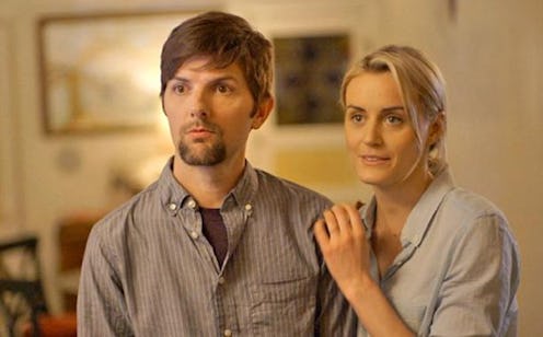 Adam Scott and Taylor Schilling are Alex and Emily, a couple that just moved from Seattle to Los Angeles with their son. The film opens with them in bed, trying to sneak in a quickie before their son wakes up. Ultimately they are interrupted by their kid, adorably dressed in Superman pajamas, who remarks, "It smells funny in here." Awkward.