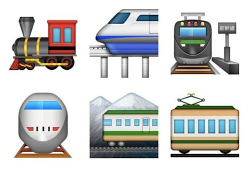 Last week, I took the gruesome liberty of interpreting what all nine of the cat emoji mean, including subtleties between the smiling cat emoji with open mouth and grinning cat emoji with smiley eyes. After careful inspection of the nuances between the cat emoji, it's apparent that all of them can be used for slightly different things and therefore are totally necessary — but what about, for example, the necessity of all 12 train emojis? It is one of the most hotly debated topics in emoji-land: How do we not have a taco emoji (yet... but it's on the way soon!), and yet we do somehow have 12 different trains to represent a method of travel that's a little bit outdated anyway?