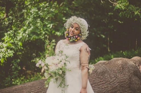 Here comes the bride, all dressed in white... with flowers in her beard. OK, so Harnaam Kaur isn't a bride yet, but she was styled as one in a shoot with Urban Bridesmaid Photography — a set of images for which she proudly showed of her bearded bridal style "lady beard" adorned with flowers. The images, the inspiring story behind them, and the woman featured in them are on the website of alternative wedding magazine Rock n Roll Bride today.