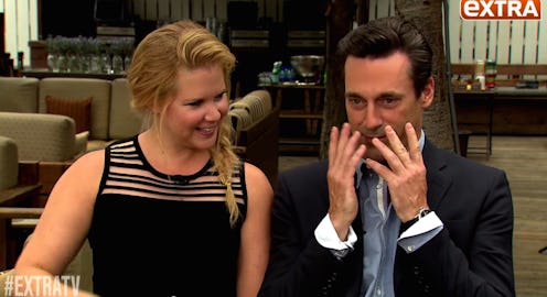 Amongst her many talents, one of the things Amy Schumer is really great at is improv, and playing the so-called "comedic foil" to any ridiculous situations going on around her. This is totally apparent in her Comedy Central series, Inside Amy Schumer, and also during her promotional appearances for her upcoming film Trainwreck. Case-in-point: Schumer promoted Trainwreck alongside co-star Bill Hader... who had turned into Jon Hamm, with no explanation whatsoever. I know — that's a deeply confusing sentence, but just go with me here.