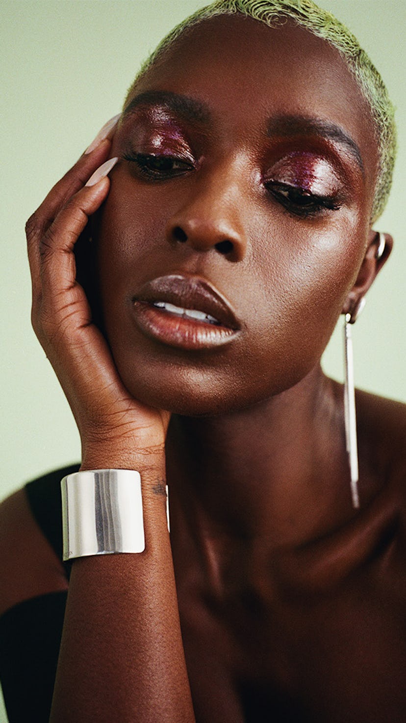 A few weeks before our Zoom, I glimpsed Jodie Turner-Smith at Lincoln Center, at a distance of several hundred feet, at the premiere of White Noise. She was on stage, hugging Baumbach and laughing at how hard it was to move in her gown. Her gown, by Alfredo Martinez, was a stunner: black sequins, with two big cutouts at the waist, and a bow at the back of her neck that spanned the width of her shoulders. But it wasn’t just the dress (the most dramatic one on stage) or her hair (buzzed and dyed reddish purple) that made you want to look at her. She has the sort of off-the-charts actorly charisma that makes it impossible not to.