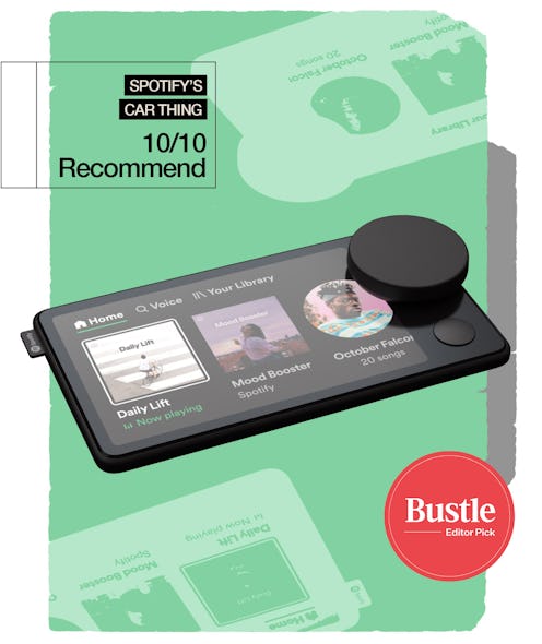Using Car Thing is pretty much a leveled-up version of using Spotify on your phone. You can say “Hey, Spotify” to ask it to play your latest album obsession or a genre you’re vibing with, or select four favorite presets that you access with physical buttons on top of the device. You can use the dial on the front of the screen or swipe and tap to browse through music options.
