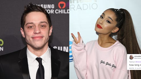 If fans thought Ariana Grande outdid herself with hilarious tweets shutting down pregnancy rumors on Thursday, June 21, they didn't know what else was coming. She's totally on a roll with those Twitter fingers of hers, which is why Grande's tweet about Pete Davidson's penis size had many fans raising their eyebrows on Friday, June 22. No, really. Even though she deleted the tweet, Grande is clearly having the best time playing with fans regarding her engagement news on social media. Honestly, no one is complaining because it's all entertaining as hell.