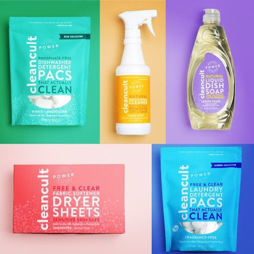 Cleancult's complete lineup includes all-purpose cleaner, dishwasher packs, laundry packs, dryer sheets, and dish soap. The company tells Bustle in an email that in the U.S., available traditional cleaning products contain more than 1,500 chemicals "that have been banned or are under review abroad." Cleancult products are all biodegradable, and are plant- and mineral-based, and according to the company, are a step up from many other green cleaners, which "don't offer effective or compelling alternatives" to chemical-based cleaning products.