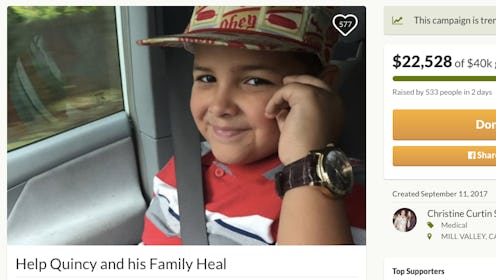 If you want to help Quincy make a quick recovery, you can help by donating to the GoFundMe page, which was started by Christa Curtin Savala and has been approved by his mother, Cassandra Merlin. The donations will be used to cover costs related to Quincy's medical expenses, moving expenditures for the family to relocate to a new town, and to help his sibling, who witnessed the heinous event, get therapy. Savala says she started the GoFundMe after reading the news report and reaching out to Merlin.