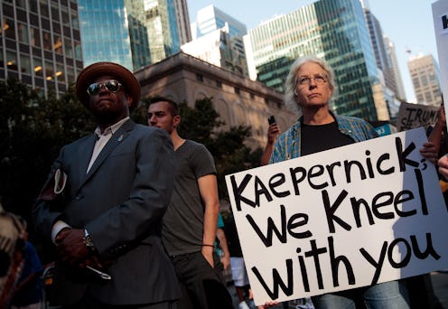 Ever since he began kneeling as the national anthem played during NFL football games to protest police brutality, former San Francisco 49ers quarterback Colin Kaepernick has become a controversial figure. While his actions earned rebuke from many conservatives who consider him a privileged football player, he's also gained a loyal group of supporters who want to advance the cause of standing against police brutality and are willing to stick up for him. But why are people protesting on Kaepernick's behalf?