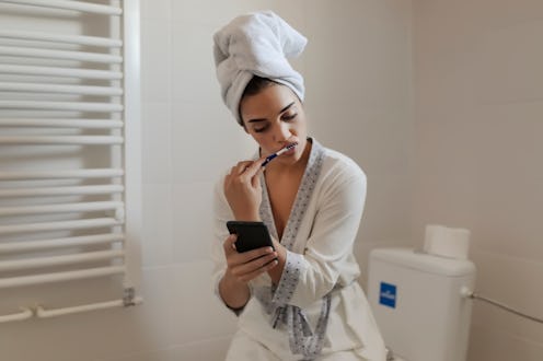 Phones themselves carry a lot of bacteria. Fun fact: research found they're home to 10 times as much bacteria as toilet bowls, per Time. But taking them into the bathroom can rack up that bacteria count. "Many bathroom surfaces, such as urinals, toilet seats, handles, sinks, and faucets, are covered in germs, and the [risk of] even more contamination of our phones becomes greater," microbiologist Jason Tetro explained to Thrillist.