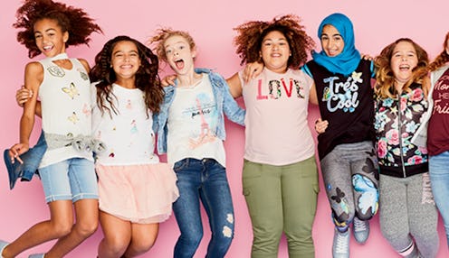 In an exciting step toward more diverse imagery aimed at young girls, tween clothing brand Justice has released a heartening new marketing campaign, called See Yourself In Justice. The main photo features eight girls jumping together, with different sizes and races represented among them. An especially notable detail? One of the girls is wearing a hijab.