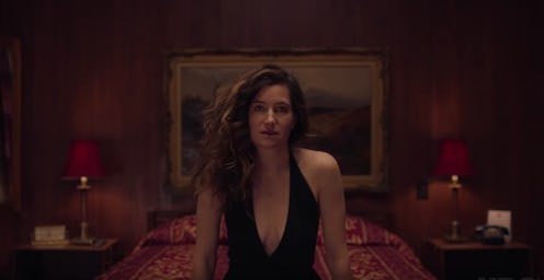 “Eve has been living in a fantasy space since the show began,” says Mrs. Fletcher creator Tom Perrotta, who also wrote the book the show is based on. With her son out of the house at college and empty nesting for the first time, Eve has been fascinated by porn, but up until this point, she hasn't brought her desires borne of that interest into the bedroom. This episode, then, "is where she steps through that invisible fence that marks the line between fantasy and reality."