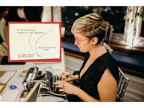 In addition to her #PoemsForSenators project, Markuson is active in the day-to-day operations of The Haiku Guys + Gals, a semi-nomadic band of modern day literary troubadours who travel the world with their typewriters and write out 17-syllable poems on-demand, many of which they post to their Instagram page. Founded by Markuson, Daniel Zaltsman, and Erick Szentmiklosy in New York City, The Haiku Guys + Gals has expanded into a collective of nearly 30 poets who are available to be booked for events — everything from weddings to breakfast picnics — where they provide free haikus to every guest. On their website, they also encourage fans to submit a request for a free, custom haiku, which can be delivered straight to your inbox or your Twitter account.