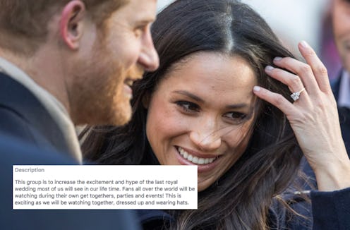 The Facebook group Prince Harry & Meghan Markle Official US Wedding Party-Viewing Celebration includes members from around the world who have all vowed to watch the Royal wedding together while dressed up like real royal wedding guests complete with hats and other royal-wedding appropriate accessories. "Our Facebook group, Prince Harry & Meghan Markle Official US Wedding Party-Viewing Celebration, was started by my sister, Julie, and I," group moderator Jennifer Corbett tells Bustle. "We have been long-time royal watchers. As soon as the engagement was announced my sister and I were immediately on the phone with each other fantasying about what we were going to wear on the big day!"