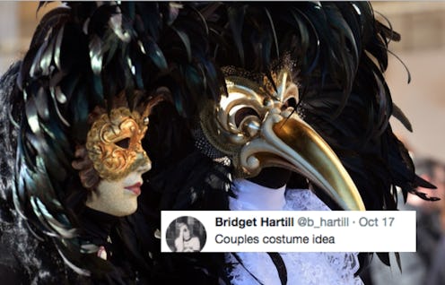 Halloween is only six days away, and you may be scrambling for a last-minute costume idea if you're a procrastinator like me. Luckily for us, "Couples Costume Ideas" is trending on Twitter, and it's filled with perfect costume ideas for the meme lovers among us. Not all of the costumes are easily doable, but some are genius in how easy they are. The meme actually dates back to 2014, but it began to trend again this week with the holiday quickly approaching. Many of these costumes can be pulled off without much effort or preparation — all it takes is superior meme knowledge.