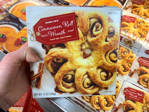 Nobody does a seamless seasonal transition better than Trader Joe's. One week you walk in to find the store filled to with rustic, autumnal treats; the next it is peppermint central. This holiday season, TJ is channeling some breakfast favorites in their offerings. Reinvented hot cocoa has made more than one appearance (in sippable and non-sippable forms), but a creative line of pastries may just take the cake for best season's eatings. In particular, Trader Joe's Cinnamon Roll Wreath is an exceptionally gorgeous work of dessert art. It may deserve a spot in the Louvre, but a spot on your plate will do.